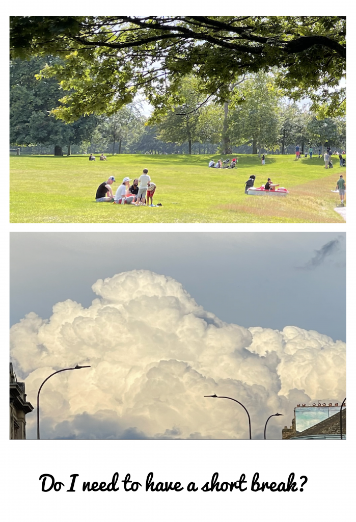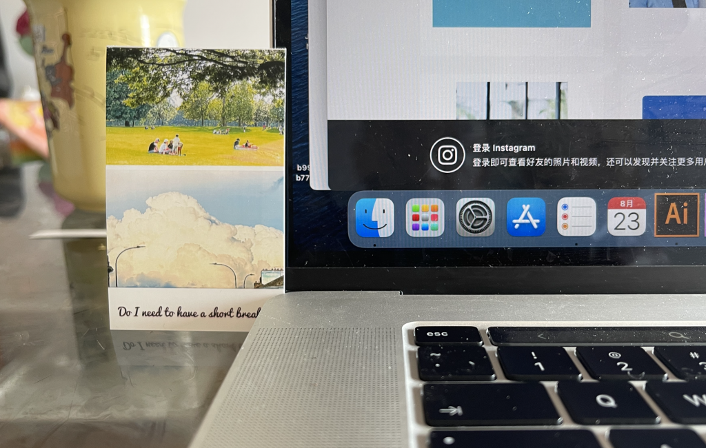 - Print out the two selected pictures and paste them on a card or board of appropriate size (different from person to person), and write a message reminding you to take a break on the board, such as: Do you want to take a break?